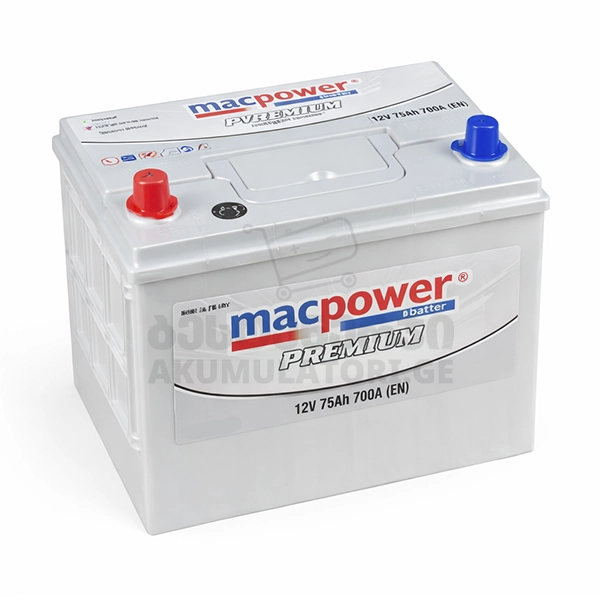 Macpower Premium 75Ah 700 A(EN) არის საშუალო კლასის 75 ამპერიანი აკუმულატორი, რომელიც განკუთვნილია მსუბუქი ავტომობილებისთვის და უზრუნველყოფს სტაბილურ, ძლიერ და სწრაფ დაქოქვას ყოველდღიურ გამოყენებაში. Macpower Premium ხაზი გამოირჩევა გაუმჯობესებული კონსტრუქციით, რაც უზრუნველყოფს უფრო მაღალ სტარტერულ დენს, სტაბილურ ენერგიის მიწოდებას და შედარებით ხანგრძლივ რესურსს. მისი ტექნოლოგიური გადაწყვეტები ზრდის ვიბრაციის მიმართ გამძლეობას და ამცირებს თვითგანმუხტვას, რაც მნიშვნელოვანია ყოველდღიური გამოყენებისას და არასტაბილურ პირობებში ექსპლუატაციის დროს.Macpower იწარმოება თურქეთში კომპანია Yigit Aku-ს (Yiğit Akü) მიერ — ერთ-ერთი მსხვილი და სწრაფად განვითარებადი აკუმულატორების მწარმოებელი რეგიონში, რომელიც აწარმოებს პროდუქციას როგორც ადგილობრივი, ისე საერთაშორისო ბაზრებისთვის. კომპანია გამოირჩევა თანამედროვე საწარმოო ხაზებით, ხარისხის კონტროლის მაღალი სტანდარტებით და ფართო ექსპორტით სხვადასხვა ქვეყანაში.Macpower Premium სერია მოიცავს სხვადასხვა ტექნოლოგიის აკუმულატორებს, მათ შორის: სტანდარტული ტყვია-მჟავა (SMF), EFB (Enhanced Flooded Battery) და AGM (Absorbent Glass Mat). ეს ნიშნავს, რომ ბრენდი ფარავს როგორც სტანდარტულ, ისე Start-Stop სისტემის მქონე ავტომობილების მოთხოვნებს და საშუალებას აძლევს მომხმარებელს შეარჩიოს შესაბამისი პროდუქტი მისი ავტომობილის სპეციფიკაციის მიხედვით.
